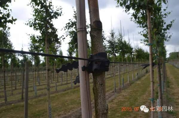 行間拉直固定樹木,采用橡膠扣固定,保護(hù)樹木表皮不會(huì)受損并可多次使用。