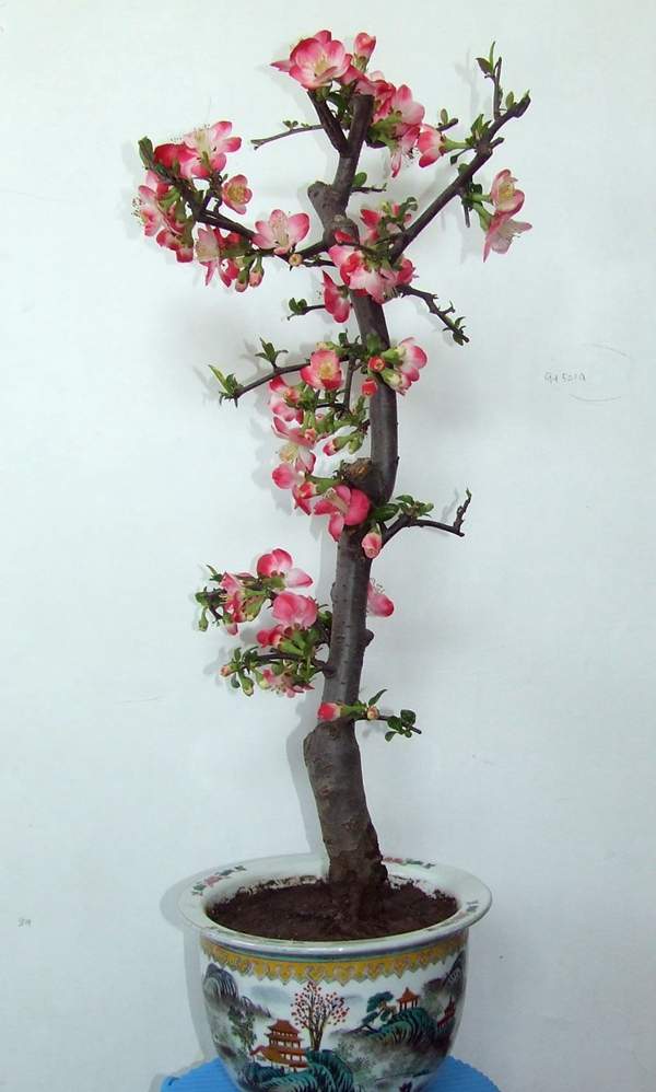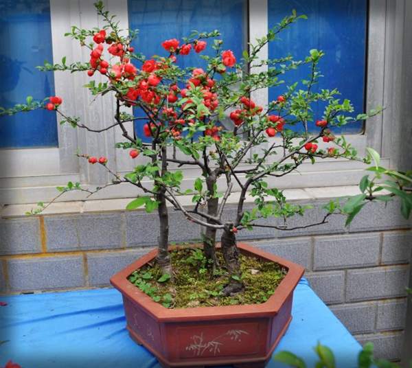 貼梗海棠它又叫作皺皮木瓜,而且還有許多的叫法,是落葉灌木的一種,它在園林綠化上屬于觀花、觀果的優(yōu)良品種;特別是在花期的時候,滿樹花朵非常的艷麗,顏色多樣;貼梗海棠不但在園林效應上有它的風采,而且它的果實還可以吃,果實營養(yǎng)豐富含維生素多,在醫(yī)學上也有它的獨特功效;貼梗海棠在綠化上可以栽種在景區(qū)、道路兩邊、庭院等地方;還可以在一些綠化樹中栽種一兩棵貼梗海棠,可以起到點綴的效果,成片的栽種也有不一樣的觀賞效果;它不僅可以地栽也可以制作為盆景,造型多種,常被放置在客廳、花臺、陽臺、門庭邊都可以,下面我們就來欣賞一下它的各種造型盆景吧: