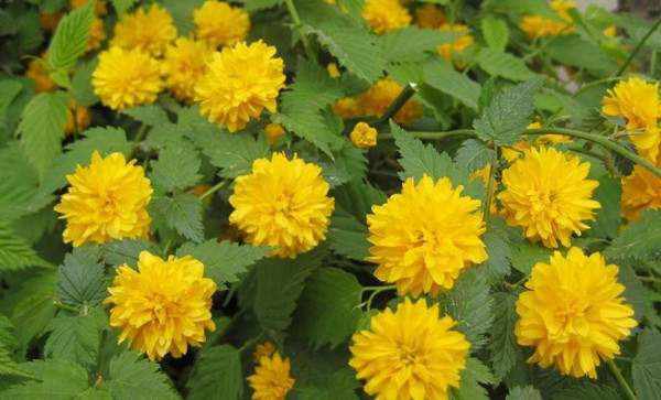 棣棠是北方園林綠化常用的落葉花灌木,植株高度一般0.8~1.5米,纖細(xì)瘦弱的枝條,顏色碧綠,匍匐生長(zhǎng),直立性較差,棣棠葉子也是綠色,葉子長(zhǎng)2~10cm寬1.5~4cm。每年4月5月開花,花朵金黃,直徑4cm,重瓣。