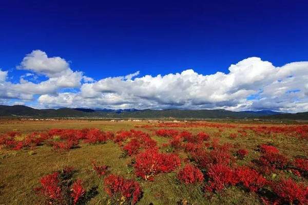 中甸位于云南省迪慶藏族自治州。這里有廣闊而美麗的草原,生長(zhǎng)著滿(mǎn)山的莨茗紅葉,色彩濃艷夸張。而被紅浪所包圍的藏民村莊、田野,則顯得非常樸素和安詳。