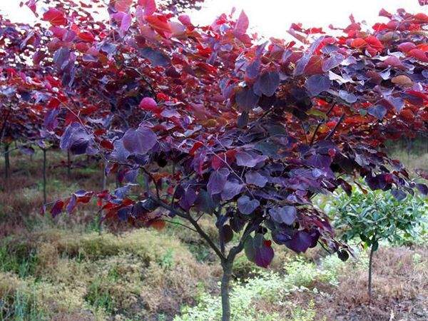 紅葉加拿大紫荊(也稱紫葉加拿大紫荊)屬落葉灌木,株高6--10米,冠幅8--12米。葉片心型,春、夏、秋三季葉色均為亮麗的紫紅色,嫩梢一直呈瑰麗的紅色?;ò霞t色,花多,花期3--4月。適應(yīng)性強,較中國紫荊耐寒。在酸堿性土壤及干旱濕潤土壤都可生長。既可種于庭院、公園,又可種于路邊,是極佳的風(fēng)景園林樹種。